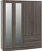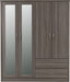 The Lisbon 4 Door Wardrobe in Black Wood Grain features two full-length mirrored doors, combining functionality with sleek style. Offering ample hanging space and shelving behind its bold, textured finish, it’s perfect for keeping your wardrobe organised while adding a contemporary edge to your bedroom.