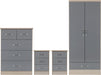 Nevada 2 Door 1 Drawer Wardrobe Bedroom Set - Grey Gloss/ Light oak