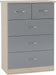 Upgrade your bedroom with the stylish Nevada Bedroom Set in Grey Gloss and Light Oak Effect Veneer. This contemporary 4-piece set includes a sleek 2 door 1 drawer wardrobe, a spacious chest of drawers, and two matching bedside tables. With a modern gloss finish and warm oak contrast, this set offers both functionality and flair—perfect for keeping your space organised and on trend.