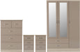 Nevada 3 Door 2 Drawer Mirrored Wardrobe Bedroom Set – Oyster Gloss/Light Oak Effect Veneer