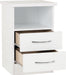 Enhance your bedroom with the sleek Nevada 2 Drawer Bedside in clean white gloss. With two spacious drawers, it provides perfect bedside storage while adding a modern, bright touch to your room’s decor.