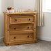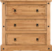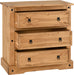 The Corona 3 Drawer Chest combines traditional style with everyday functionality. Its three spacious drawers provide ample storage, while the rustic pine finish and black metal details bring a warm, timeless look to any room.