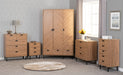The Leon 3 Drawer Chest in Medium Oak combines classic style with practical storage. Its warm wood finish and spacious drawers make it ideal for organising clothes and essentials while adding a cozy, timeless touch to any bedroom.