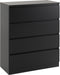 The Malvern 4 Drawer Chest in Black brings a bold, modern touch to your bedroom. Featuring four spacious drawers, it offers practical storage with a sleek, stylish finish to keep your essentials neatly organised.