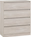 The Malvern 4 Drawer Chest in Urban Snow features a cool, light-toned finish paired with practical storage. With four spacious drawers, it’s ideal for keeping your clothes and essentials organised while adding a fresh, modern touch to your bedroom.