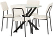 Sheldon Round Glass Top Dining Set – Clear Glass/Black/Ivory Boucle Fabric