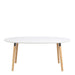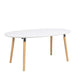 Discover the elegance of modern dining with our chic oval table, featuring a pristine white top and a contrasting oak-stained base for a touch of natural charm. Perfect for contemporary homes seeking a blend of style and functionality.
