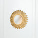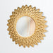Round 48cm accent wall mirror handcrafted from metal in a gold finish to create an ornate sunflower design.