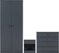This contemporary bedroom set features a bedside table, chest of drawers, and a two-door wardrobe in a rich dark grey finish. A stylish and functional choice for modern interiors.