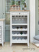 - The upper area has space to hold up to 20 wine glasses, suspended upside down