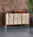 Large Sideboard with 3 Drawers and 3 Doors, featuring CNC cuts on the front of each door, matching wooden handles and angled metal legs. The unit will come fully assembled, only the legs must be attached. Drawer dimensions (HxWxD): 13x36x31 cm Shelf dimensions (HxWxD): 30x40x35 cm