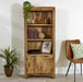 Combining a fresh modern look with rustic reclaimed wood and beautifully crafted into a sturdy bookcase for any room in your home. Featuring 3 deep open display areas you can showcase your books / ornaments etc and store any unwanted items out of sight in the spacious cupboard. The rough sawn laquered finish highlights the natural beauty of the wood with a handmade unique look and feel. Made entirely using 100% Eco sourced solid natural wood by skilled craftsmen in India.