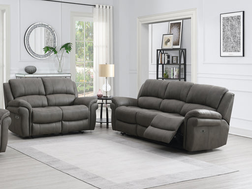 RS FurnitureDescription Relax in style with the Cassa 2+3 Recliner Sofa Set. Upholstered in a sleek dark grey fabric, this modern set features electric reclini...