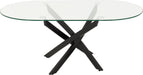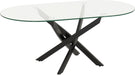 Modern and elegant, the Sheldon Oval Coffee Table adds a touch of sophistication to any living space. Featuring a sleek clear glass top and bold black legs, its open, airy design creates a stylish focal point without overwhelming the room. The smooth oval shape is perfect for both everyday use and entertaining, offering a contemporary twist on classic coffee table styling. A striking blend of form and function for the modern home.