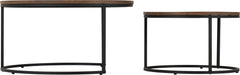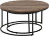 Modern style meets industrial edge with the Quebec Round Coffee Table Set. Featuring a sleek black metal frame and warm medium oak-effect tops, this set of two nesting tables is perfect for flexible, space-saving living room use.