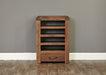 • The lower drawer is useful to hide all those remote controls and measures H14 x W35 x D24 cm