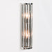 Art deco 55cm wall light with a sleek chrome metal frame and vertical clear glass rods.