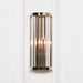 Art deco 39cm wall light with a gold metal frame and vertical clear glass rods.