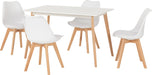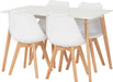 Elevate your dining space with the clean, modern charm of the Bendal Dining Set. Featuring a sleek white tabletop with a beech-effect frame, this set perfectly balances simplicity and warmth. Paired with four stylish Bendal chairs upholstered in crisp white faux leather, this set offers both comfort and contemporary flair. Ideal for kitchens or compact dining areas, it's a fresh and functional choice for everyday dining.