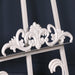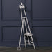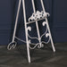 French-style 165cm metal easel in an antiqued cream finish with intricate details and an adjustable shelf.