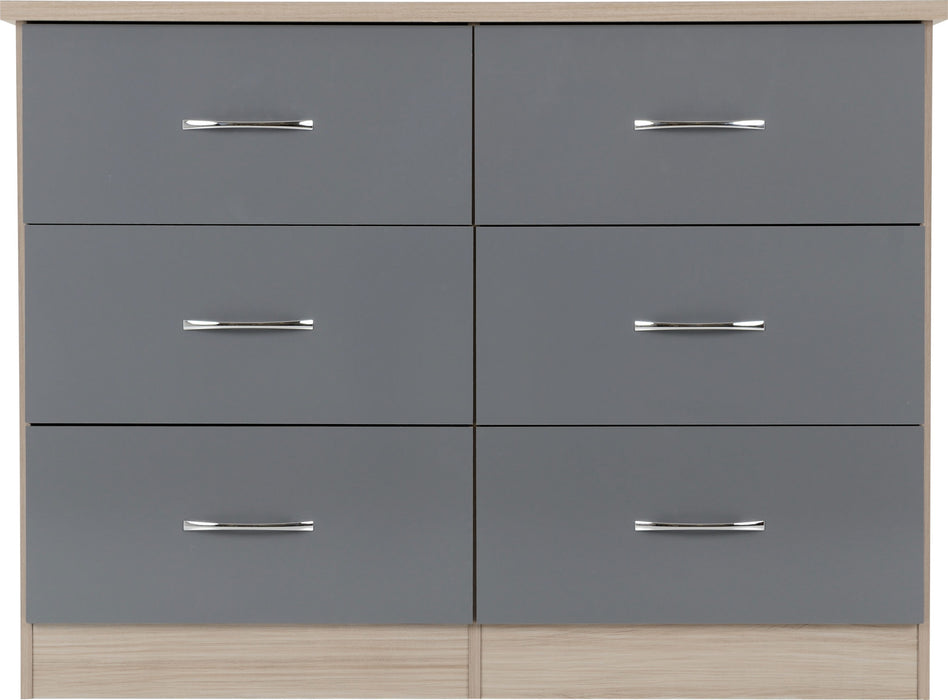 Nevada 6 Drawer Chest – Grey Gloss / Light Oak Effect Veneer