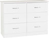 Clean and contemporary, the Nevada 6 Drawer Chest in White Gloss offers ample storage with a sleek, high-gloss finish. Featuring six smooth-glide drawers, this chest is perfect for organising clothes and essentials while brightening up any modern bedroom with its fresh, stylish look.